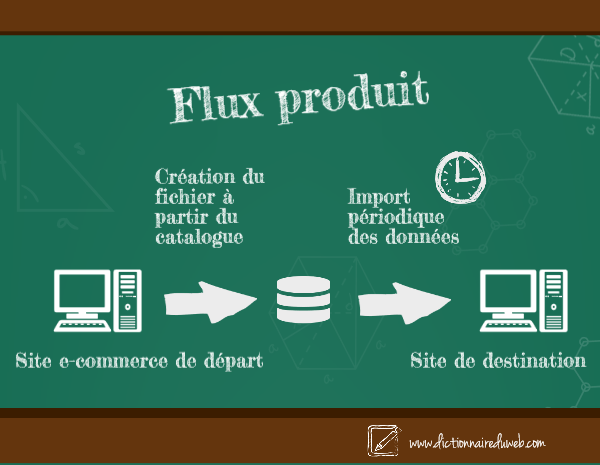 Un flux de produits est un mécanisme permettant d’envoyer périodiquement et de manière automatisée un catalogue de produits issus d’un site de e-commerce vers un site web externe : place de marché, comparateur de prix, affilié ou distributeur.Il est possible de créer des flux de produit sur l’ensemble du catalogue d’un site marchand, ou de mettre en place des flux différents selon un ensemble de critères (catégorie, marque, prix, etc.).