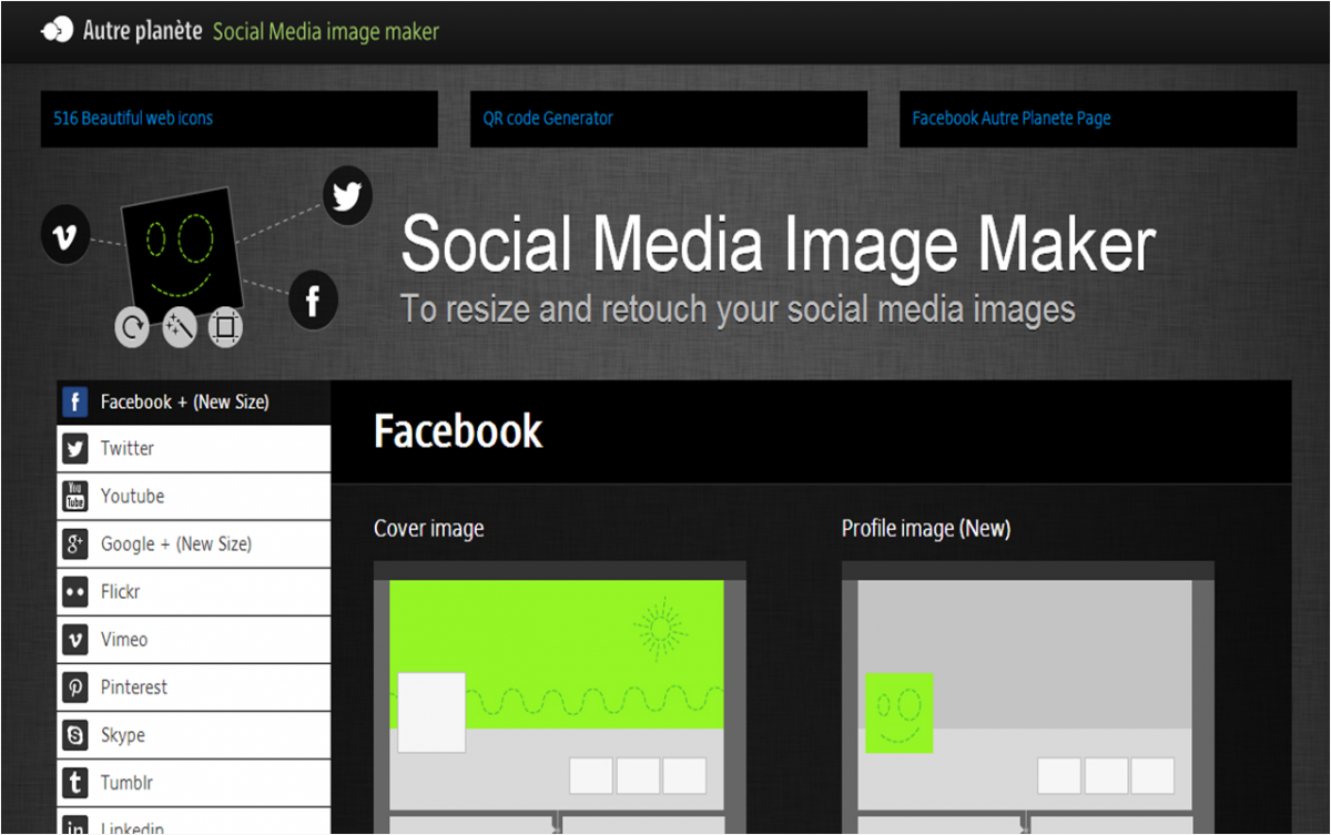 D’autres outils peuvent vous faciliter la vie pour créer de jolis visuels pour vos profils de réseaux sociaux. Je vous recommande notamment Social Media Image, qui vous permet de resizer et de retoucher très facilement vos visuels, en sélectionnant directement pour quel réseau social ils sont destinés.