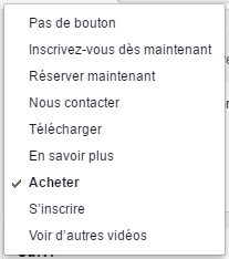 En réalité, il n’y a que 8 boutons car il y a une subtilité. « Pas de bouton » sur Facebook n’affiche effectivement pas de bouton CTA. Mais sur Instagram, vous aurez obligatoirement un bouton. Si vous choisissez de ne pas mettre de bouton alors le call-to-action « En savoir plus » se mettra automatiquement.